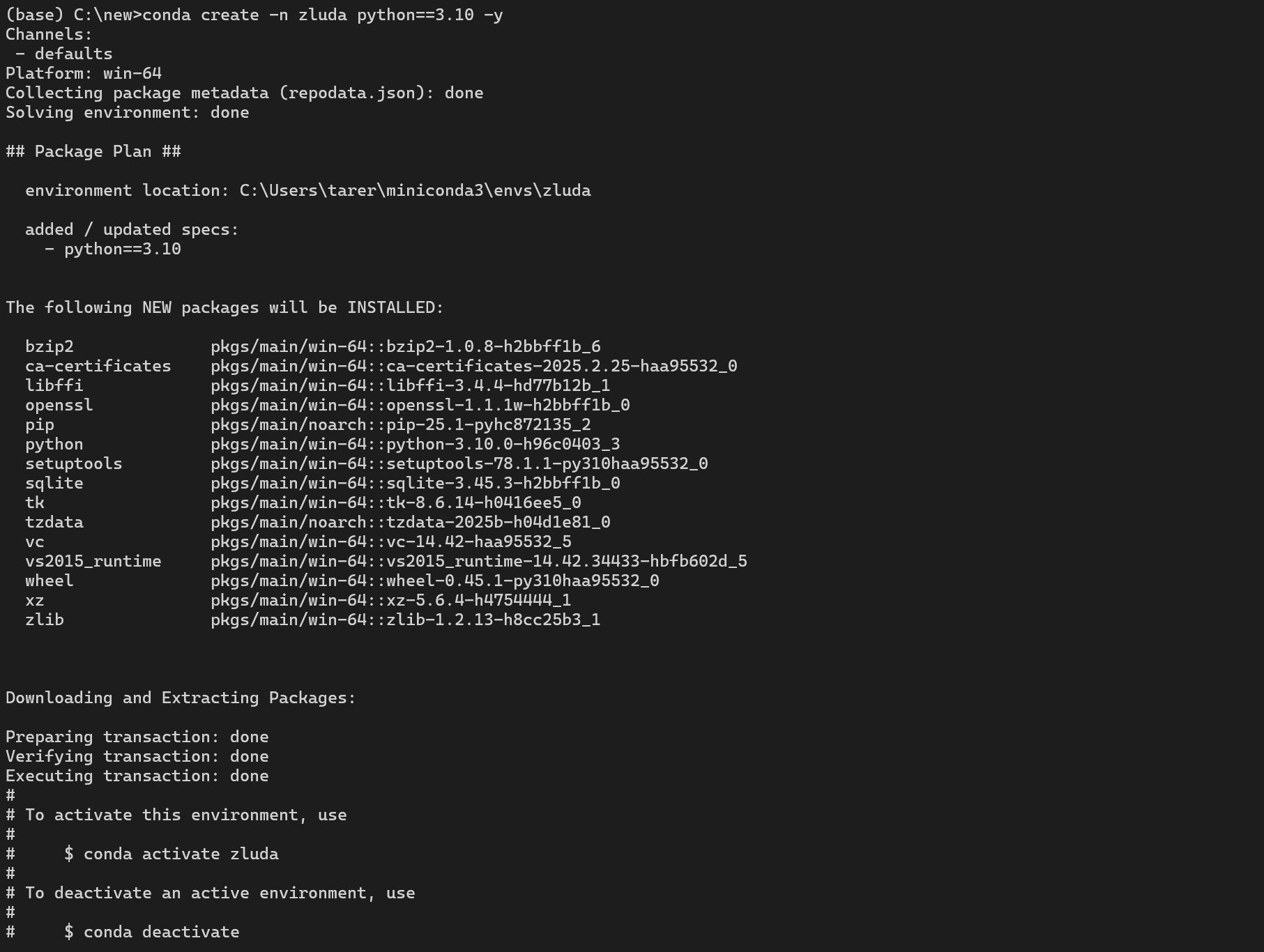 conda create -n zluda python==3.10 -y